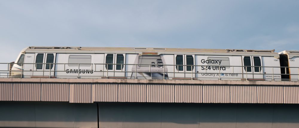 ▲ ‘갤럭시 S24’와 ‘갤럭시 AI’ 이미지로 랩핑된 말레이시아 쿠알라룸푸르 지하철 외부