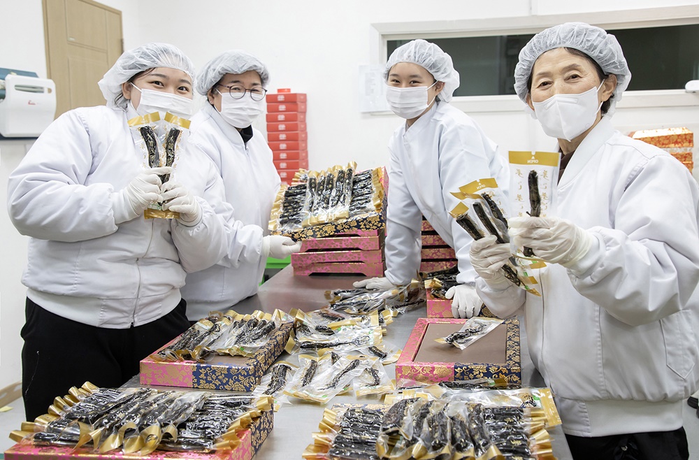 ▲ 삼성전자 스마트공장 지원을 받은 홍삼 가공식품 업체 ‘천년홍삼’ 직원들이 설 명절용 제품을 생산하고 있는 모습