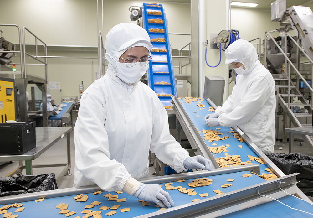 ▲전라남도 여수에 위치한 식품기업 ‘쿠키아’ 포장공정 라인에서 직원이 최종 포장 상태를 점검하고 있다.