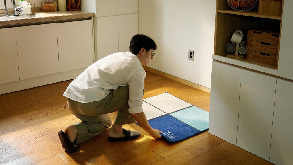 러그는 ▲‘912/697’(BESPOKE 냉장고 4도어 키친핏) ▲‘380/406’(BESPOKE 큐브 에어) ▲‘445/595’(BESPOKE 에어드레서) 등과 같이 제품의 상세 규격이 적혀 있어 실제 공간에 가전을 배치했을 때의 동선이나 구조를 고려해볼 수 있다는 점이 특징이다.