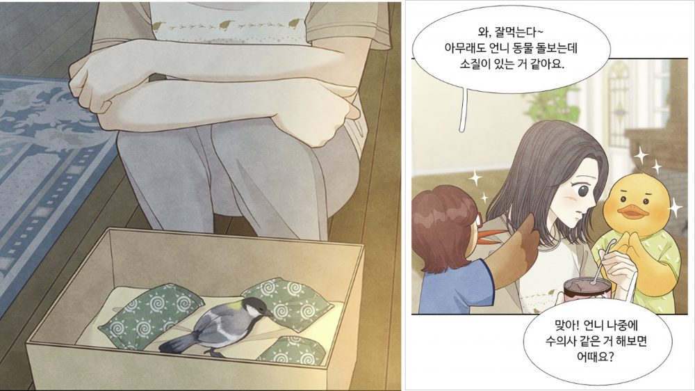▲ 웹툰 『소녀의 디딤돌』 주인공 윤정이가 새를 구조하기 위해 돕는 장면