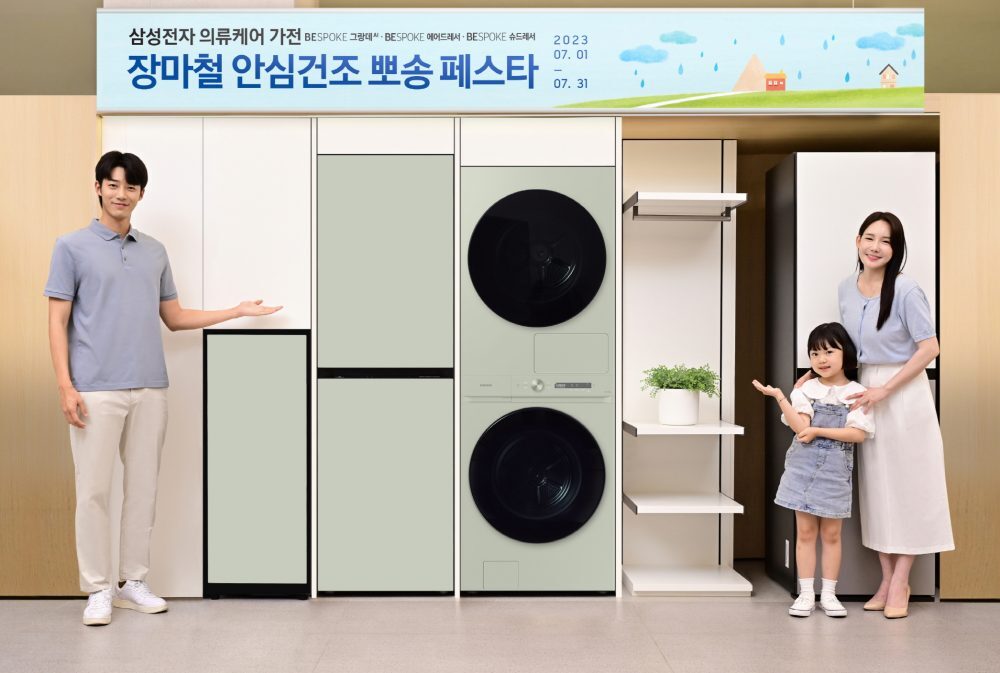 삼성전자가 본격적인 장마철을 맞아 7월 1일부터 한달 간 비스포크 그랑데 AI ‘장마철 안심건조 뽀송 페스타’를 전국 매장에서 시작한다. 이번 행사는 장마철에도 위생 걱정 없이 의류와 신발