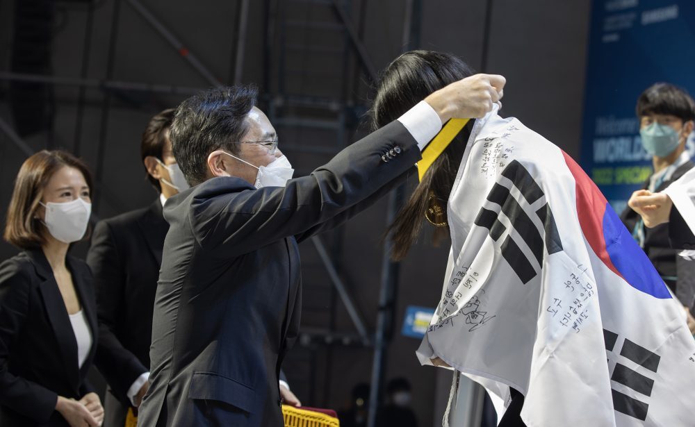 □ 이 부회장은 ‘국제기능올림픽’의 최상위 타이틀 후원사인 삼성전자를 대표해, 이번 대회에서 그 동안 갈고 닦은 기술을 선보이며 ‘기술 대한민국’의 위상을 높인 선수단을 격려하고 수상자에게 메달도 직접 수여했다.