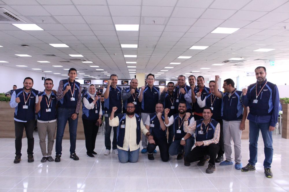▲ 이재용 삼성전자 회장이 1일(현지시간) 이집트 중부 베니수에프주(州)에 위치한 삼성전자 TV·모바일 공장을 찾아 근무 중인 임직원들과 기념 촬영하고 있다. 이 회장은 추석 연휴인 지난 달 28일부터 이날까지 사우디아라비아와 이스라엘·이집트를 찾아 현지 사업장에서 근무 중인 임직원들을 격려하고 사업 확대 방안을 논의했다.