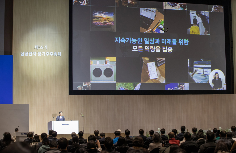또 “삼성전자는 기존사업의 경쟁력을 지속 강화하면서 미래 핵심 키워드인 AI, 고객 경험, ESG 측면의 혁신을 이어가고, 다양한 신제품과 신사업, 새로운 비즈니스 모델을 조기에 발굴할 수 있는 조직과 추진 체계를 더욱 강화해 나가겠다”며 주주들에게 지지와 응원을 당부했다.