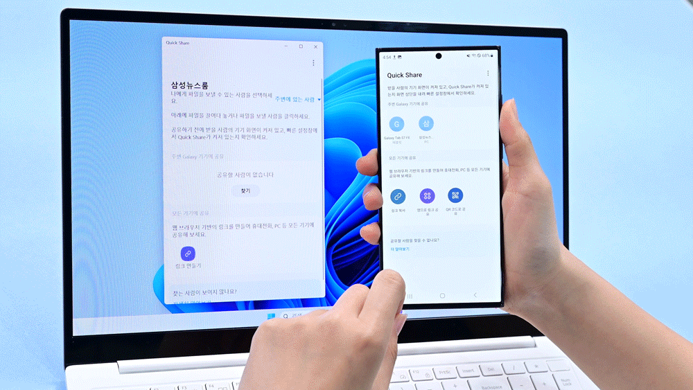 ▲ ‘Quick Share’ 기능으로 갤럭시 스마트폰에서 갤럭시북으로 파일을 공유하는 모습