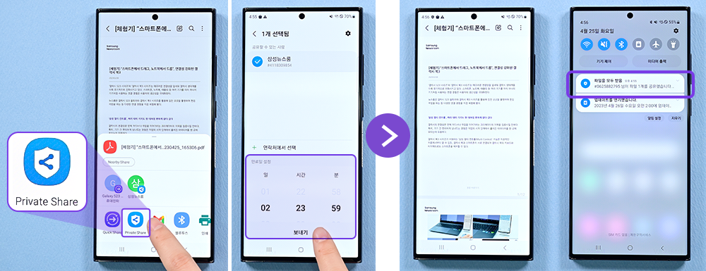 ▲ ‘Private Share’로 파일을 공유하기 전, 열람 만료일을 설정할 수 있다.