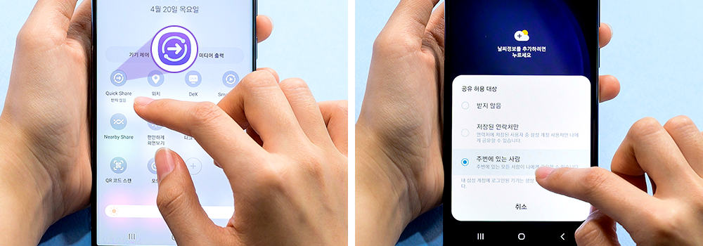 ▲ 갤럭시 상단 바의 ‘Quick Share’를 활성화하기만 하면 끝!