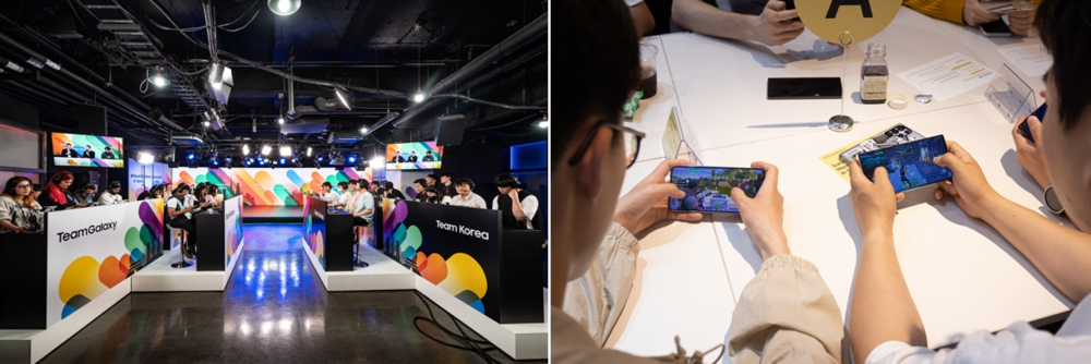 ▲ 팀코리아 vs. 팀갤럭시 토너먼트 현장과 게임을 즐기는 삼성 멤버스 스타즈 (왼쪽부터)
