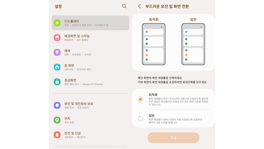 주사율은 화면 재생 빈도(refresh rate)라고 하며 화면상에서 1초에 얼마나 많은 장면을 표현할 수 있는지 나타내는 수치로, 스크린 주사율의 단위는 ‘Hz’로 표기한다. 갤럭시에 탑재된 적응형 주사율은 콘텐츠에 따라 화면의 주사율을 자동으로 조절하여 배터리 수명을 최적화하면서, 부드럽고 매끄러운 스크롤과 시청 경험을 제공해 주는 기술이다.
