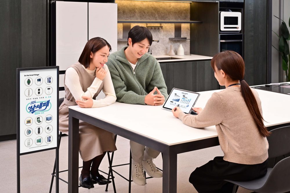 ▲ 삼성전자 모델이 삼성스토어 대치 본점에서 ‘2024 삼성전자 세일 페스타’를 소개하고 있다.