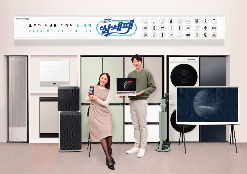 삼성전자가 2024년을 맞아 고객들의 새로운 시작을 응원하는 ‘2024 삼성전자 세일 페스타(이하 삼세페)’를 1월 한 달간 연다. 올해 4회차를 맞아 더 큰 혜택으로 돌아온 ‘2024 삼세페’는 가전, 모바일 제품을 대상으로 하며, 전국 온‧오프라인 매장에서 동시에 진행된다.