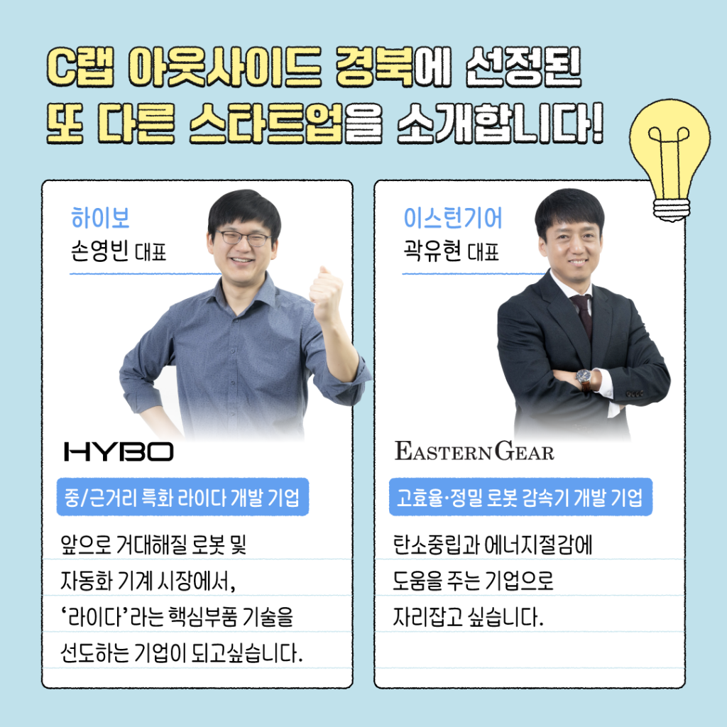 제조업에 강점이 있는 경북 지역 특성에 맞게 ‘소부장(소재/부품/장비)’ 스타트업을 중점 선발했다. 선정된 스타트업은 사업지원금 1억 원, 맞춤형 스케일업 컨설팅, IT 전시회 참가 등 다양한 혜택을 받으며 특히, 삼성전자 구미사업장에 근무하는 제조/생산 및 소프트웨어 개발 분야의 임직원이 멘토로 참여하여 업체별 집중 케어 프로그램을 제공받는다.