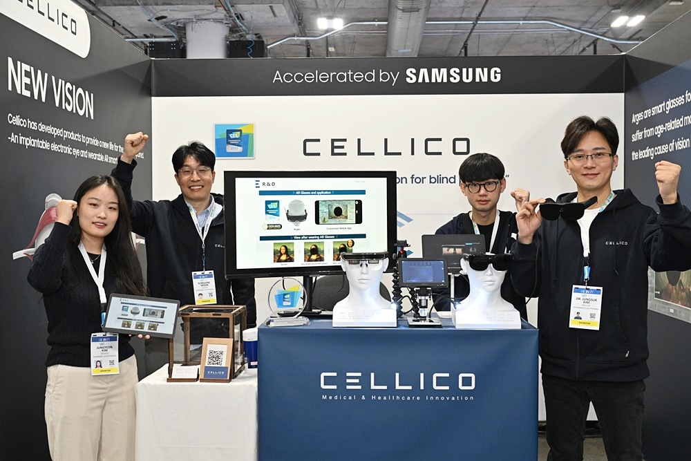 ▲ 관람객에게 국내 최초 전자눈 장치를 소개하고 있는 첨단 헬스케어 업체 ‘셀리코(CELLICO)’