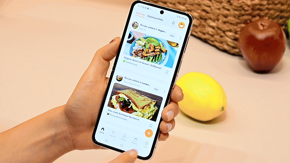 내가 레시피를 공유할 수 있다는 건 다른 사람의 레시피도 확인할 수 있다는 것을 의미한다. 삼성 푸드로 재미있는 레시피를 발견했다면, 그 요리를 만든 크리에이터의 계정을 방문해 더욱 다양한 레시피를 접해볼 수도 있다. 유제품을 사용하지 않는 제빵사(Dairy-free Bakers)를 팔로우하고 있다면, 이 계정의 레시피를 참고해 유제품 없이 맛있는 빵을 종류별로 만들어 볼 수 있을 것이다.