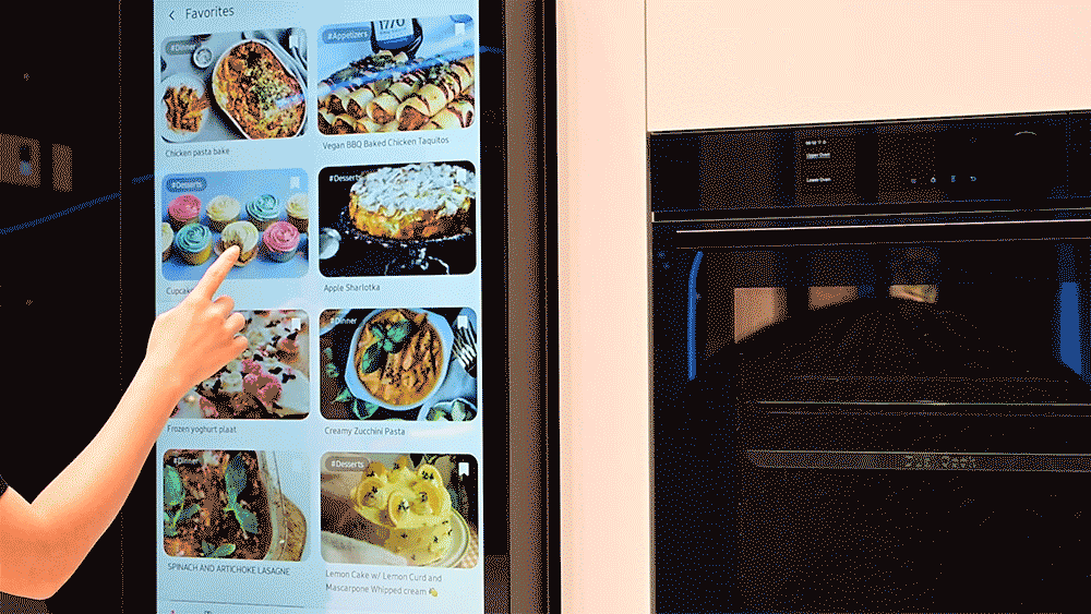 ▲ 삼성 푸드를 통해 패밀리 허브 냉장고에서 찾은 레시피를 조리법을 오븐에 미리 전송해 둘 수 있다.