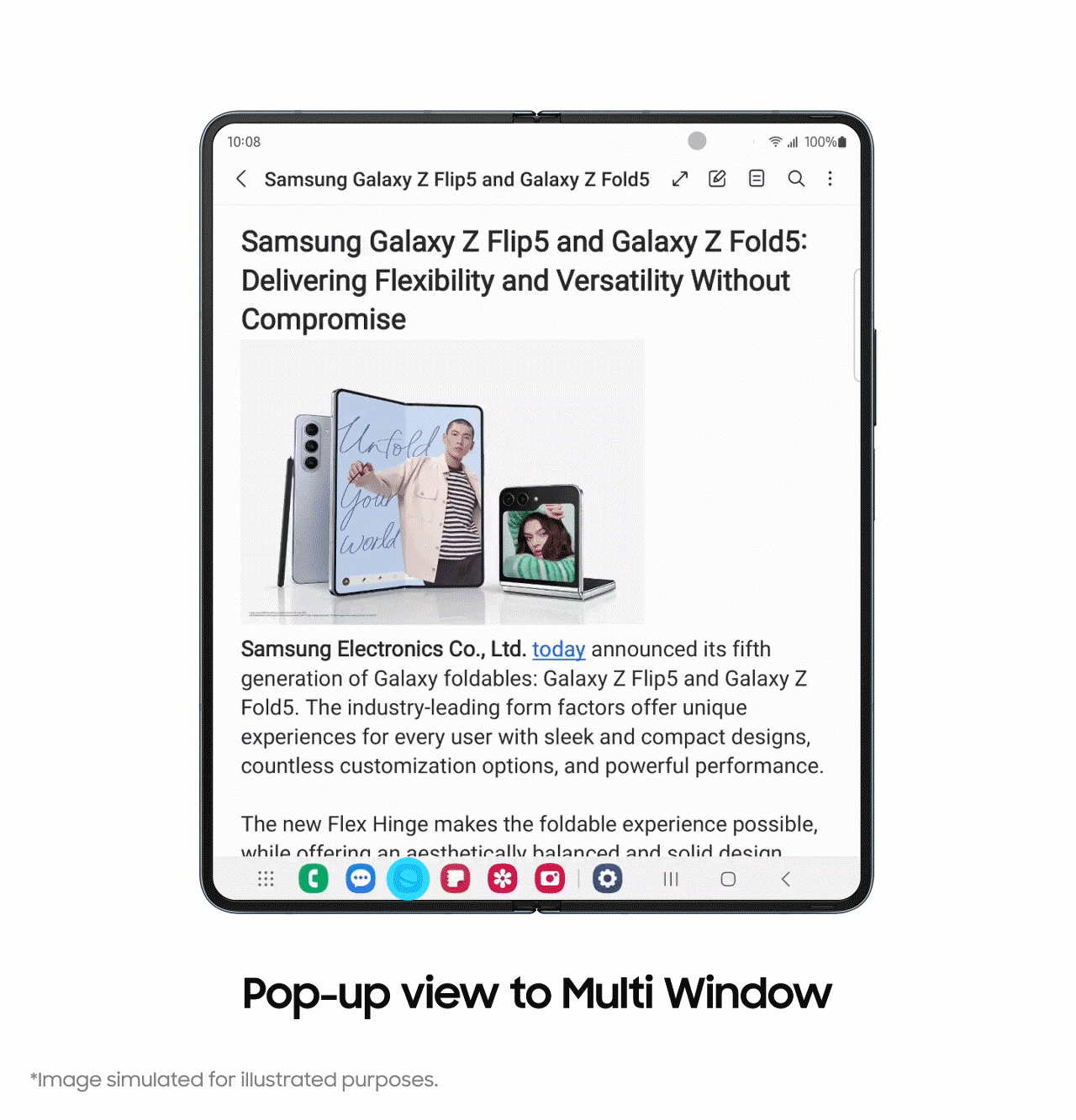 폴더블 스마트폰과 태블릿에서 지원되던 멀티태스킹 기능도 더욱 직관적이고 쉽게 개선됐다. 갤럭시 Z 폴드4, Z플립4, 탭 S8사용자는 이제 영상 콘텐츠를 시청하면서 팝업 화면으로 삼성 노트를 열어 중요한 내용을 손쉽게 메모할 수 있다. 필기 작업이 끝나면 팝업 화면을 측면으로 스와이프해 시야를 방해하지 않도록 숨기고, 다시 필요할 때 간단히 불러올 수 있다.