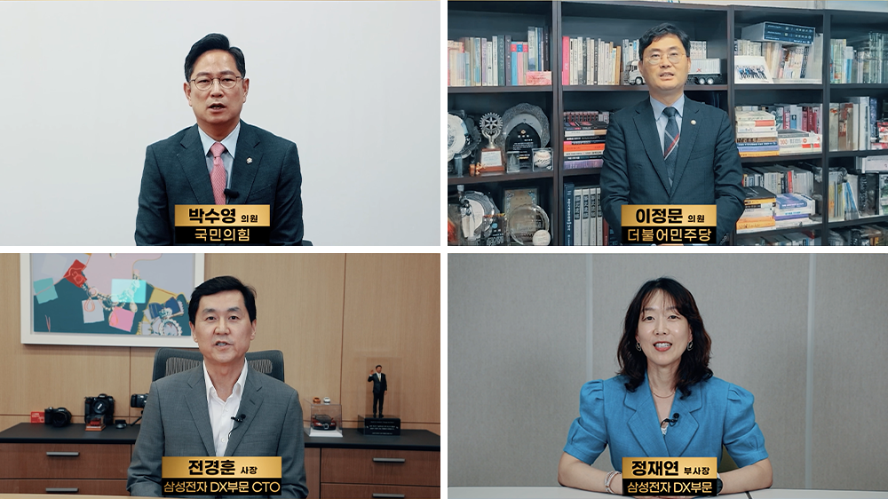 ▲ (좌측상단부터 시계방향으로) 국민의힘 박수영 의원, 더불어민주당 이정문 의원, 삼성전자 DX부문 정재연 부사장, 삼성전자 DX부문 CTO 전경훈 사장