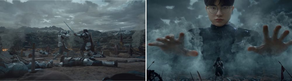 강윤성 감독 : 이번 브랜드 필름의 핵심은 ’반전’이다. 전장에서 T1 선수들이 등장해 상황을 바꾸는 형식으로 스토리 라인을 잡았다. 전쟁이 끝났다고 생각했지만 ‘페이커’가 나타나 모니터를 넓히자 더 많은 적들이 등장하는 식이다. 이런 반전 요소들에 집중하면 더욱 재미있게 영상을 감상할 수 있을 것이다.